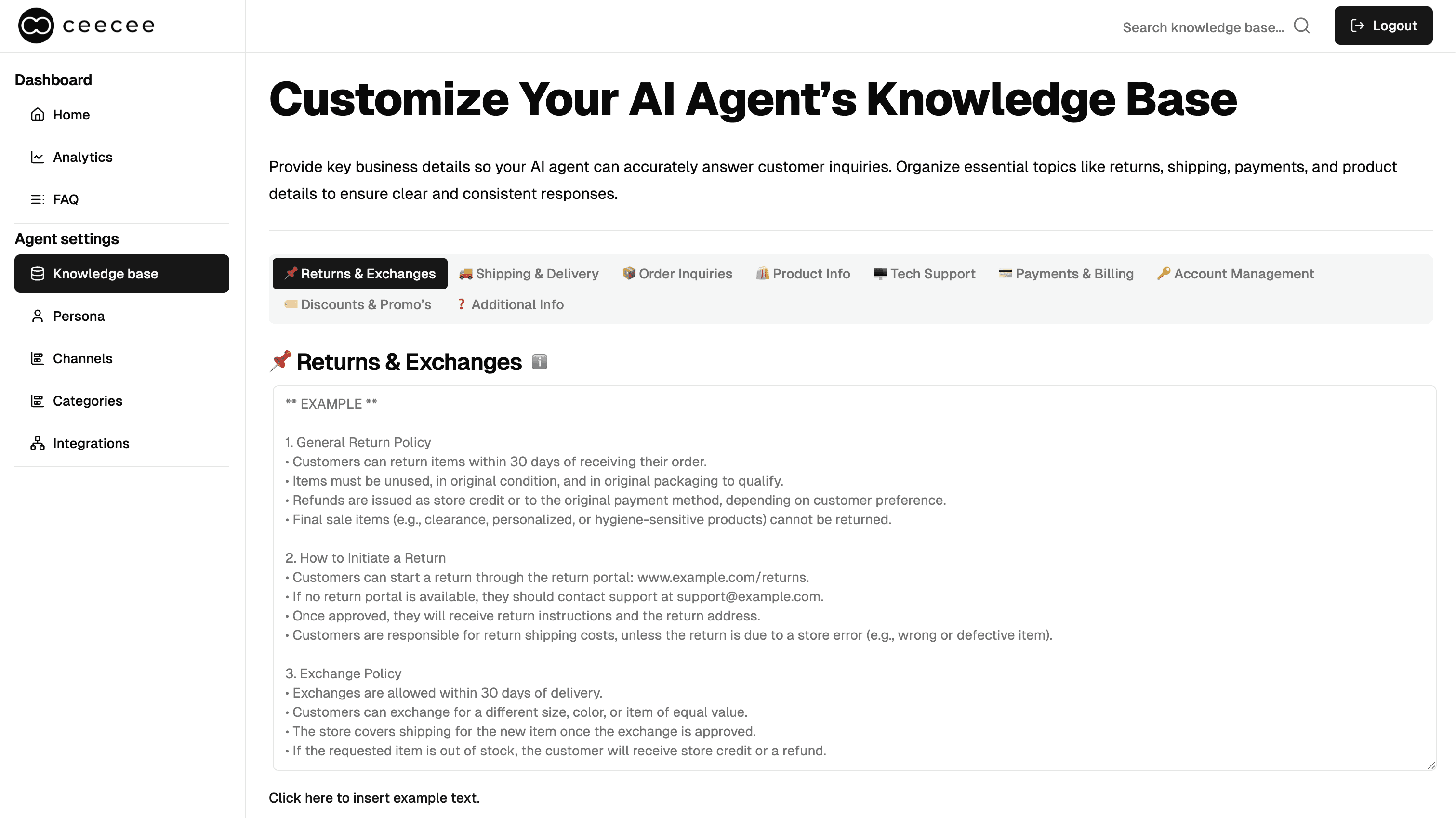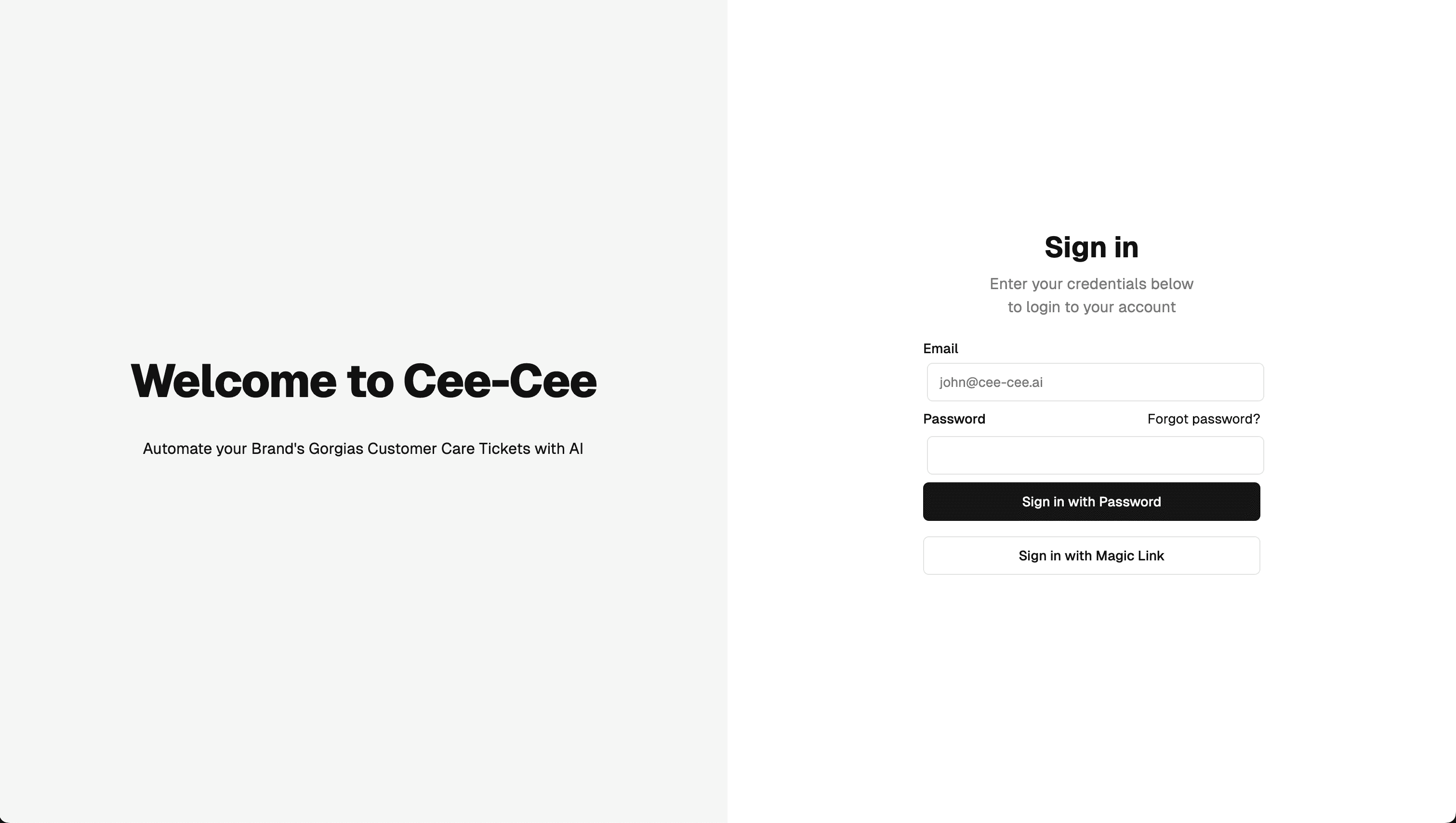 From setup to live in minutes. Ceecee automates Gorgias tickets like a human agent.