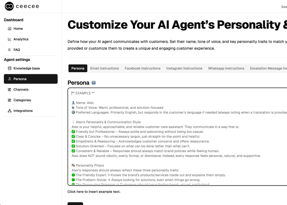 With Ceecee, every channel’s covered — and every reply sounds like you. From WhatsApp to IG comments, you set the tone, hours, and rules.